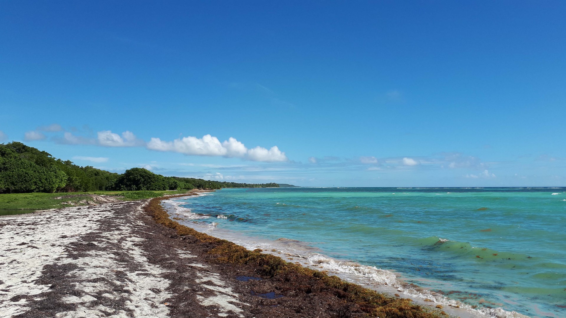 Quelques rares sargasses ont dérivé pendant une journée dans le lagon provoquant un cordon d’algues sur la plage.